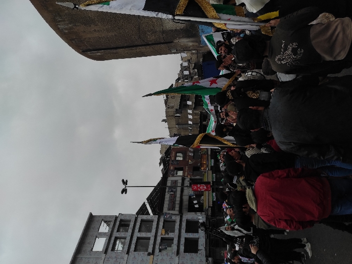 - "The image presents a daytime scene of a crowd gathered on an urban street in Ash-Shaghour Municipality, Syria, under an overcast sky" by FM-oaYm93, licensed under CC BY 4.0