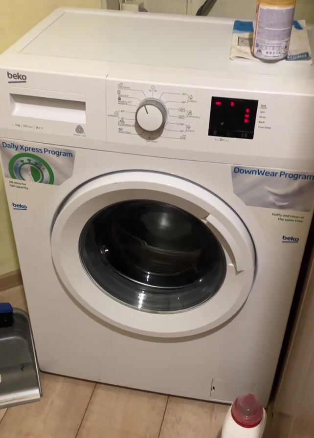 white Beko washing machine in operation