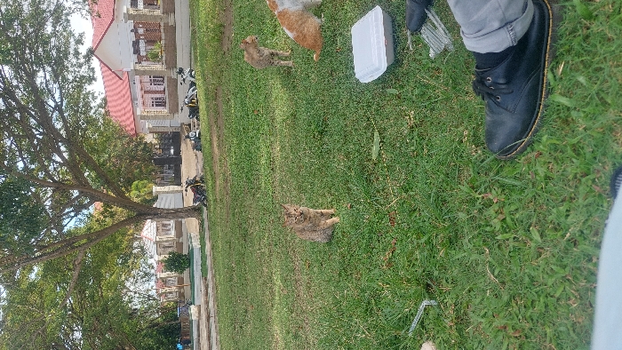 - "Green grass covers the ground with three cats lounging" by FM-s5bAy2, licensed under CC BY 4.0