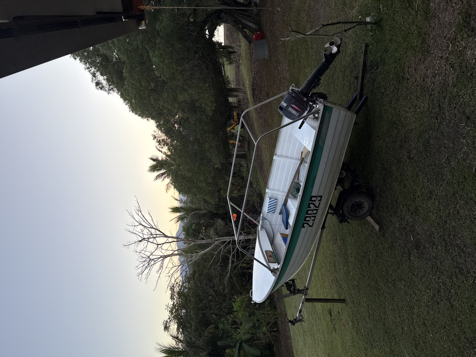 - "A white and green aluminum fishing boat, bearing the registration number "29829" in black, is situated on a single-axle trailer on a grassy lawn in Dumbéa, France" by FM-BCfsB2, licensed under CC BY 4.0