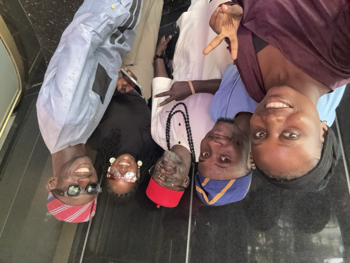 Five individuals, three males and two females, are captured in a selfie-style photograph indoors in Itirin, Nigeria