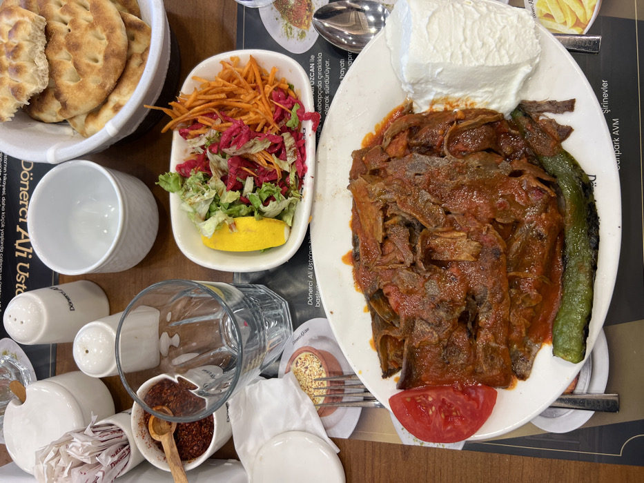 - "The image depicts a meal served on a wooden dining table within a restaurant located in Bakırköy, Turkey, specifically at a "Dönerci Ali Usta" establishment, with menu text indicating a branch in Şirinevler" by FM-RsxEw2, licensed under CC BY 4.0