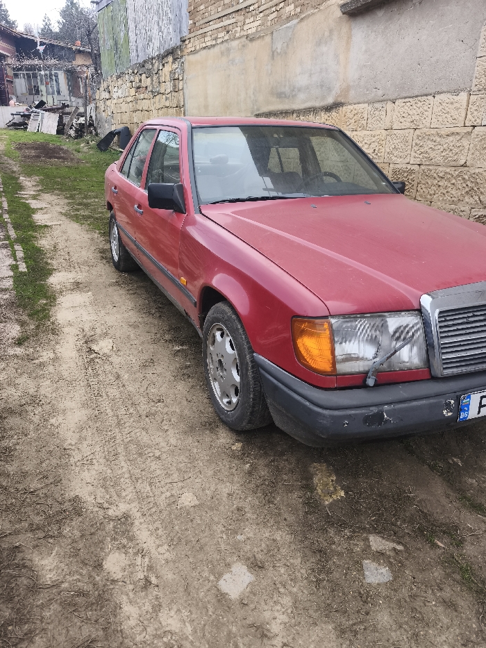 - "A red Mercedes-Benz W124 four-door sedan is parked on an unpaved dirt path in Pirgovo, Bulgaria" by FM-i1aDW2, licensed under CC BY 4.0