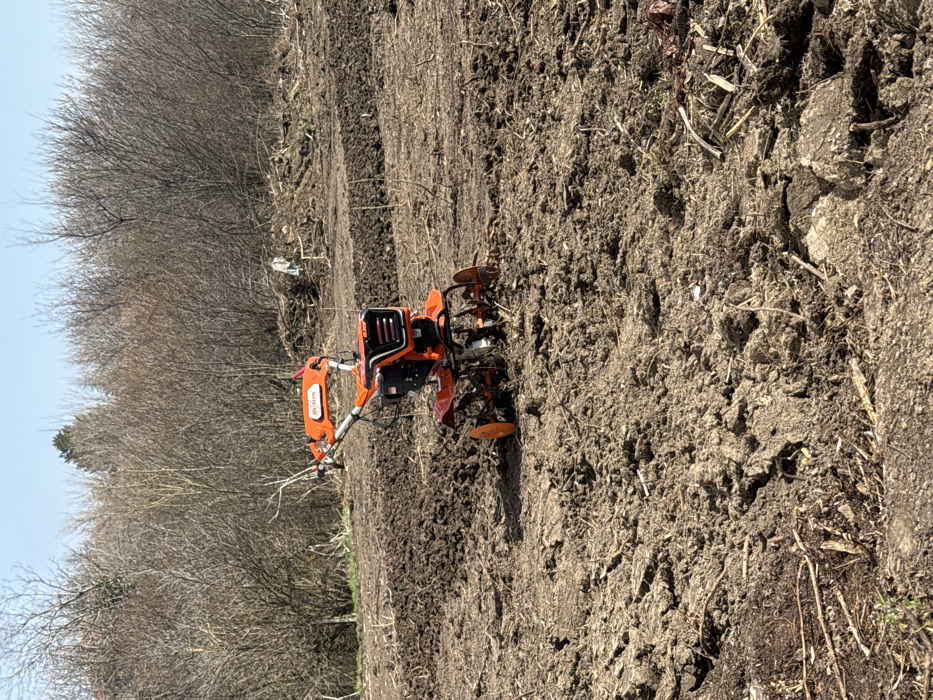- "An orange and black RURIS brand garden tiller stands stationary on recently tilled, dark brown soil within a field in Totleben, Bulgaria" by FM-qBSgX2, licensed under CC BY 4.0