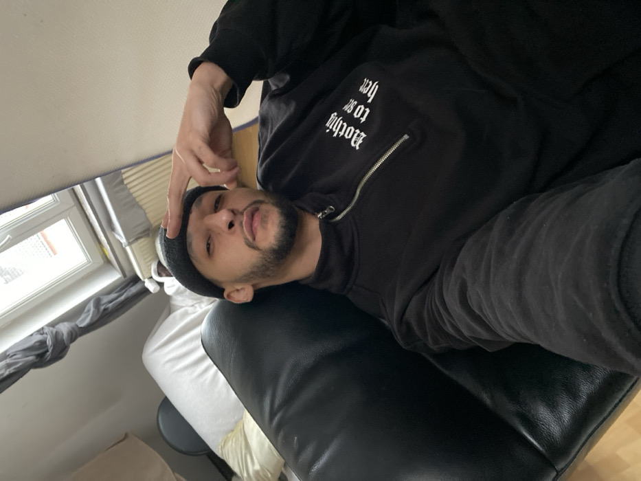 - "A man lies at an odd angle, face towards the camera, wearing a black beanie" by FM-WEULP2, licensed under CC BY 4.0