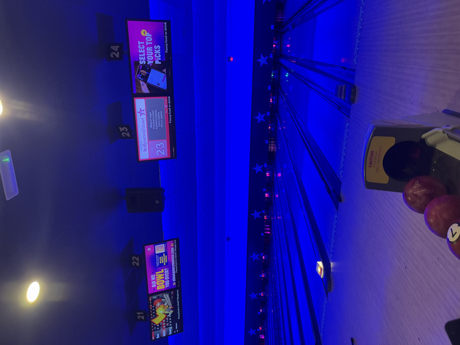 - "bowling alley lane lit with blue lighting and a white ceiling, with a ball return system at the end of the lane" by FM-tAd7y1, licensed under CC BY 4.0