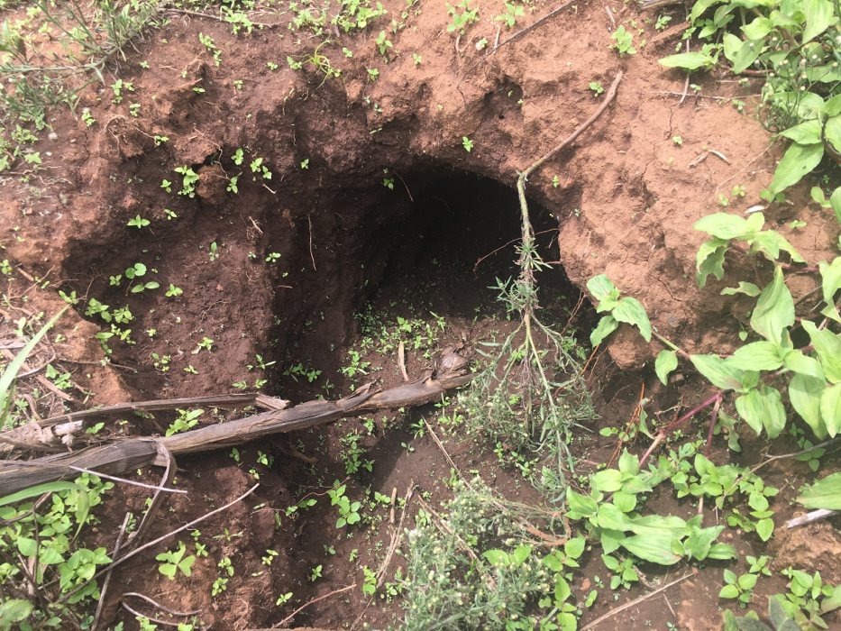 The image displays an open, dark, and seemingly deep excavation hole in the ground, located in Limuru, Kenya