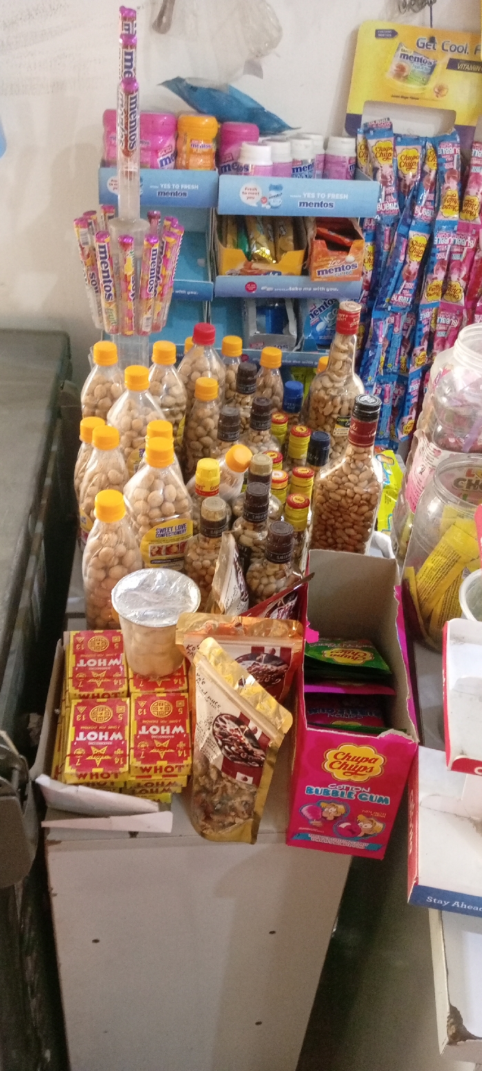 - "The image displays a cluttered retail counter in what is identified as Aviation Quarters, Nigeria, presenting an array of packaged snacks and confectionery products" by FM-oATT32, licensed under CC BY 4.0