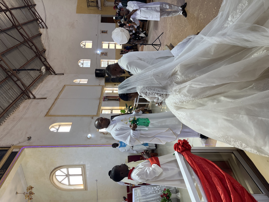 An indoor scene within a religious building in Kuru Karama, Nigeria, depicts a ceremony in progress