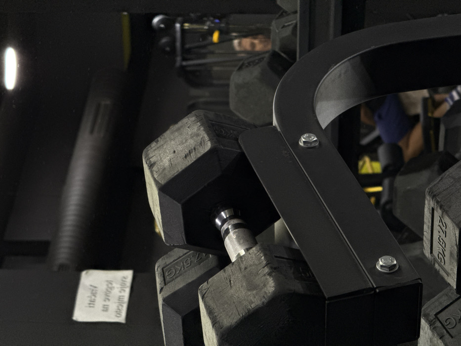 - "A close-up captures a rack of black, hexagonal dumbbells in a gym setting" by FM-PnYaY2, licensed under CC BY 4.0