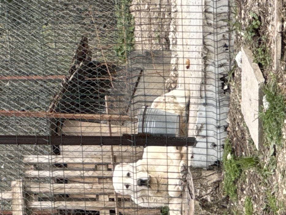 - "The image depicts a large, light-colored dog resting inside a chain-link fenced enclosure in Veliki Preslav, Bulgaria" by FM-Gf6gR2, licensed under CC BY 4.0