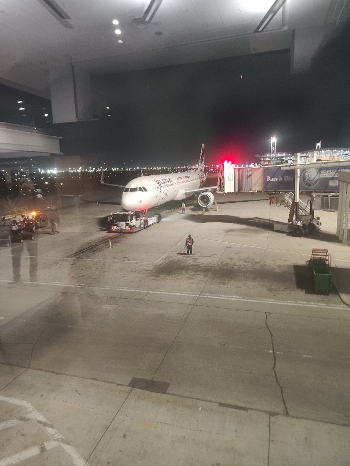 - "At night, a LATAM airplane is parked at an airport gate connected by a jet bridge" by FM-XLOz83, licensed under CC BY 4.0