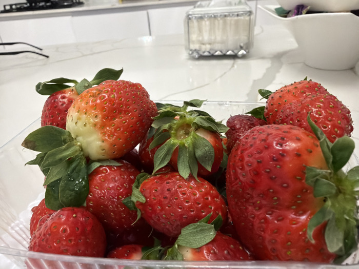 - "A clear plastic container overflows with ripe strawberries" by FM-Ssc0d2, licensed under CC BY 4.0