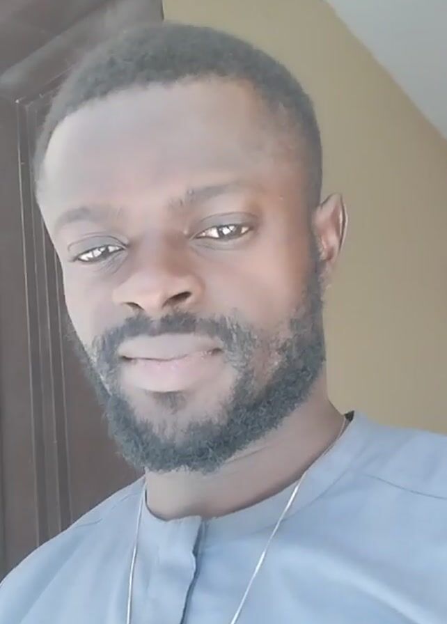 A medium shot shows a Black man with a beard and gray shirt looking directly at the camera