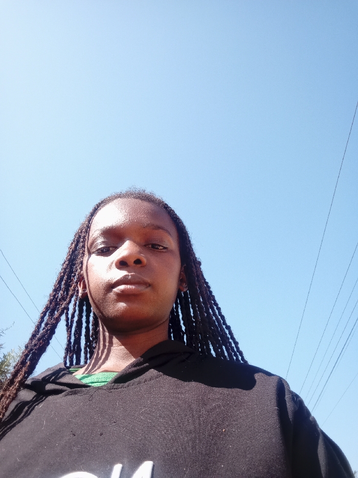 - "A low-angle outdoor portrait depicts an individual with dark skin and dark braided hair, looking directly at the camera with a neutral expression" by FM-iEAFO2, licensed under CC BY 4.0