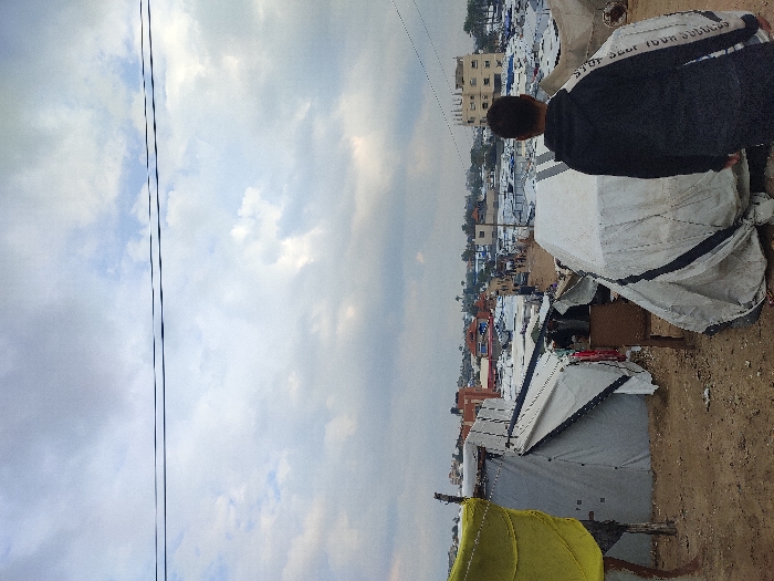 - "The image depicts a crowded makeshift settlement in Al-Mawasi, Unknown, under an overcast sky with patches of white and gray clouds" by FM-SMnrI3, licensed under CC BY 4.0
