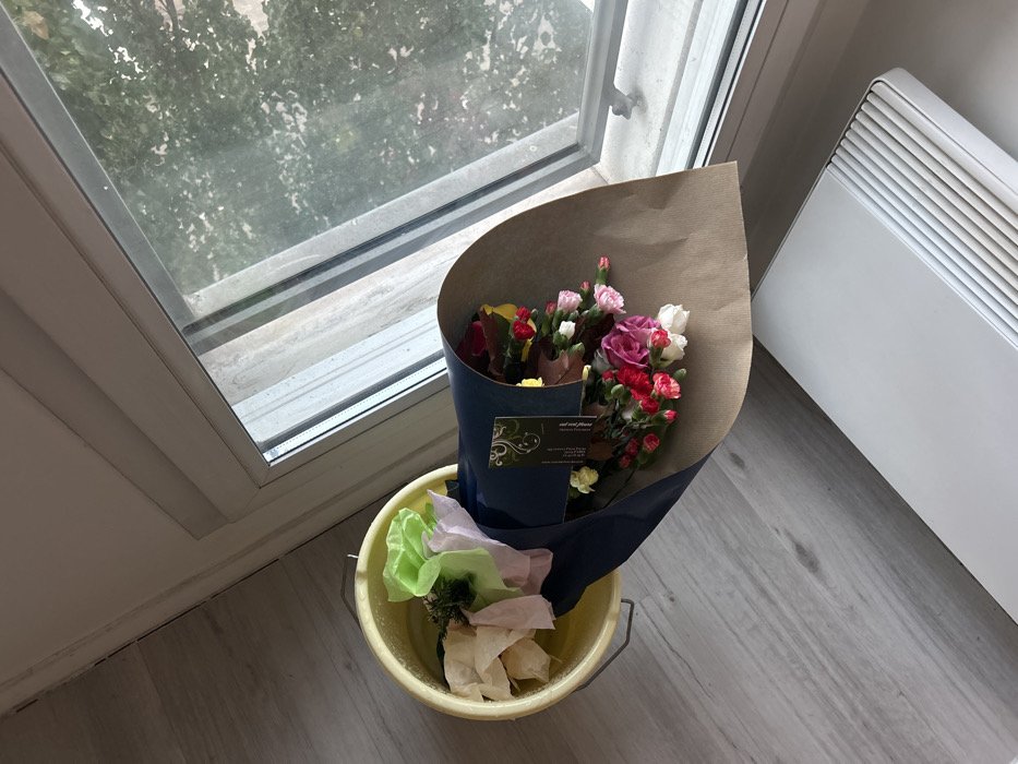 An indoor scene in Vanves, France, depicts a bouquet of flowers positioned near a window