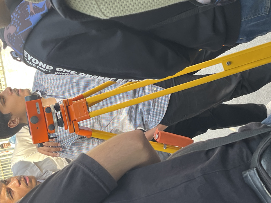 - "The image displays an outdoor scene in Al-Qanawat Municipality, Syria, centered around a bright orange optical surveying level mounted on a yellow tripod" by FM-WnN6r1, licensed under CC BY 4.0