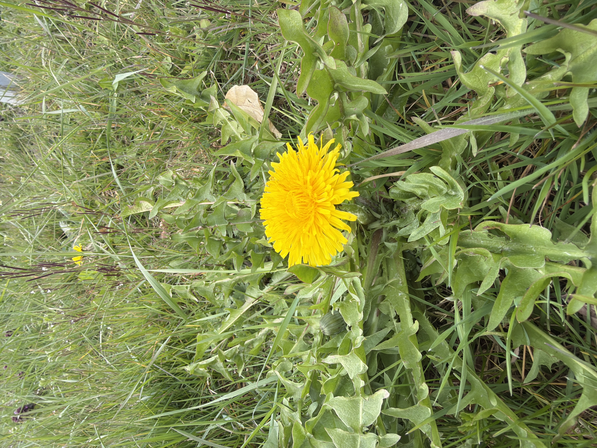 - "The image depicts a dandelion flower in a field of grass and dandelion leaves" by FM-5n3LF3, licensed under CC BY 4.0