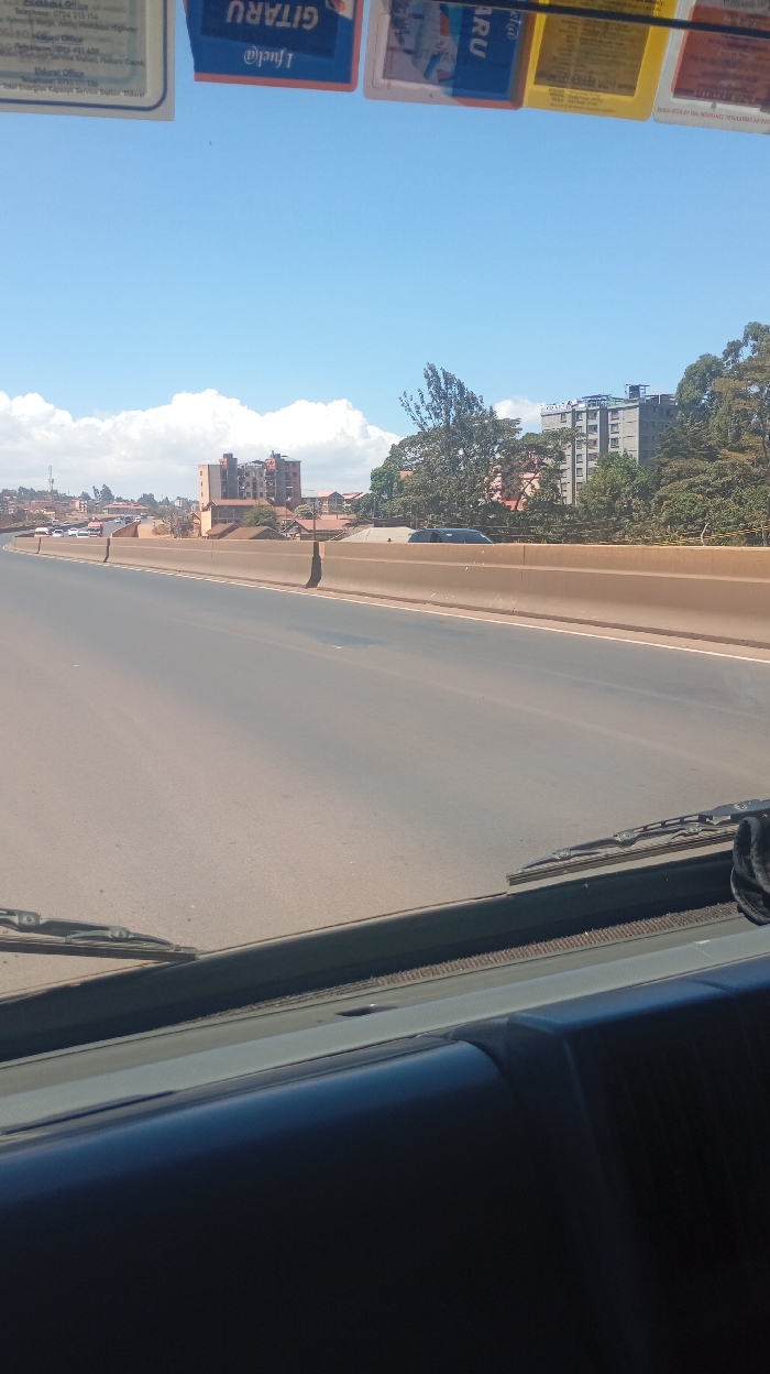 A view from inside a vehicle, likely on a highway