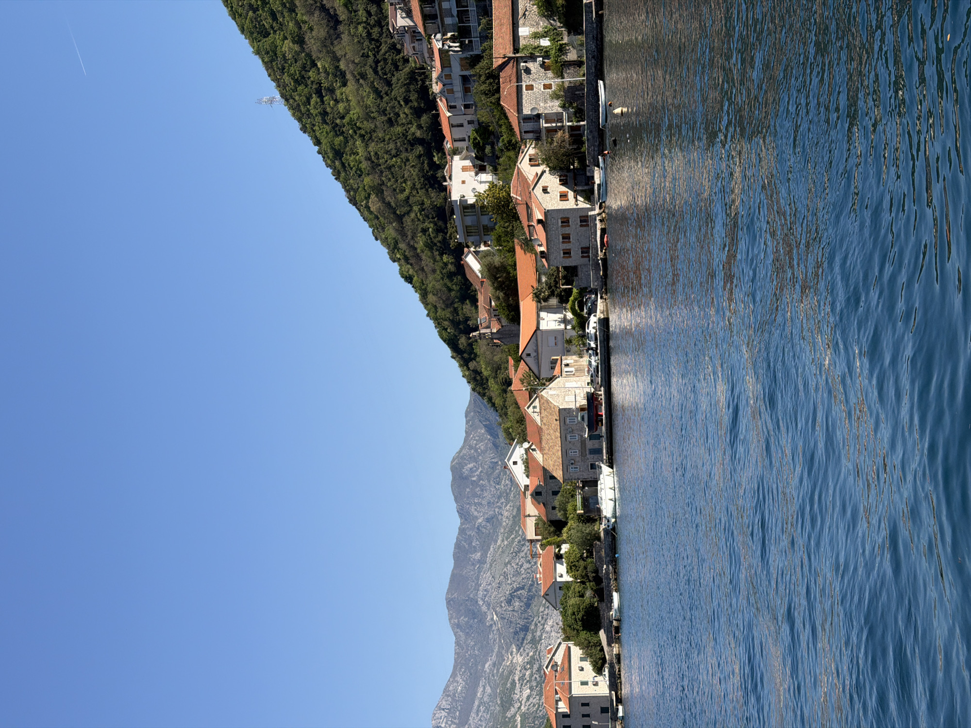 The image depicts a coastal scene in Lepetane, Montenegro