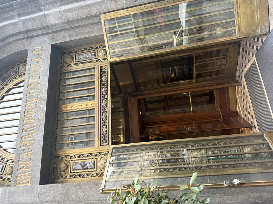 - "The image displays the ornate entrance of the Marmorosch-Blank Bank Palace, located in Bucharest, Romania" by FM-3K6t32, licensed under CC BY 4.0