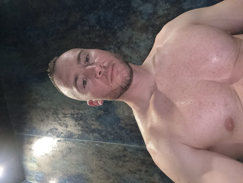 An adult male, bare-chested from the upper abdomen to the top of his head, is depicted in a frontal shot