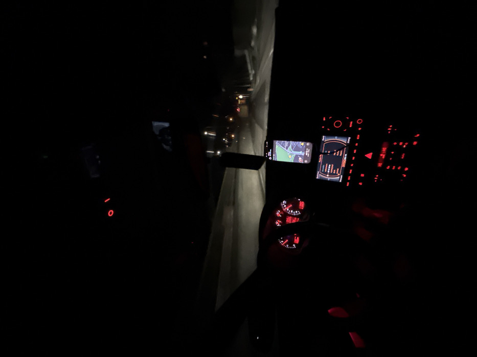 - "The image depicts the interior of a vehicle at night, observed from the front passenger's perspective looking forward through the windshield" by FM-K78od2, licensed under CC BY 4.0