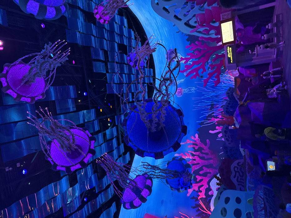 - "The image depicts an indoor, immersive, underwater-themed environment, specifically identified as the "Plankton Hub" within SeaWorld Yas Island, Abu Dhabi, United Arab Emirates" by FM-GMxhS2, licensed under CC BY 4.0