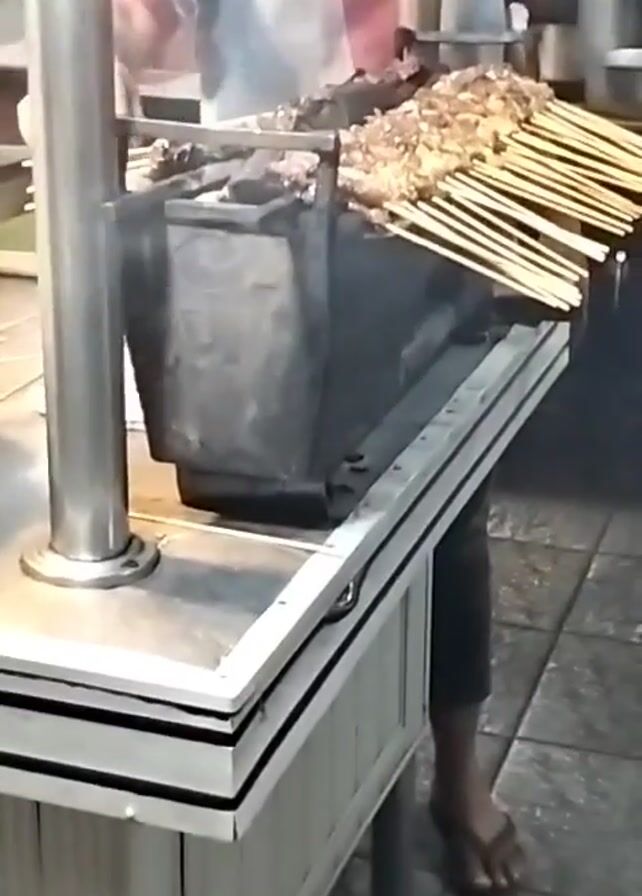- "A man in a red and grey shirt is grilling satay skewers on a charcoal grill" by FM-sAcf03, licensed under CC BY 4.0