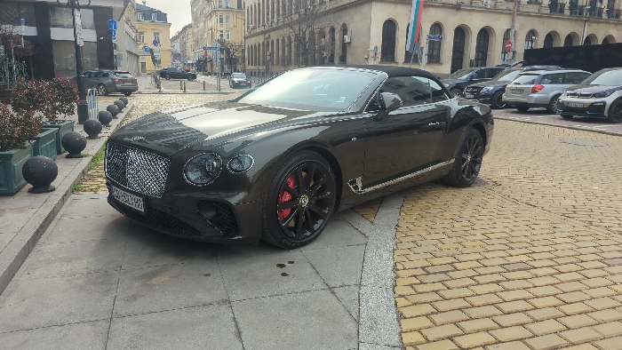 - "A dark-colored Bentley Continental GT Convertible is parked on a city street in Sofia, Bulgaria, with its front wheels on a concrete sidewalk and its rear wheels on yellow cobblestone pavement" by FM-Emas82, licensed under CC BY 4.0