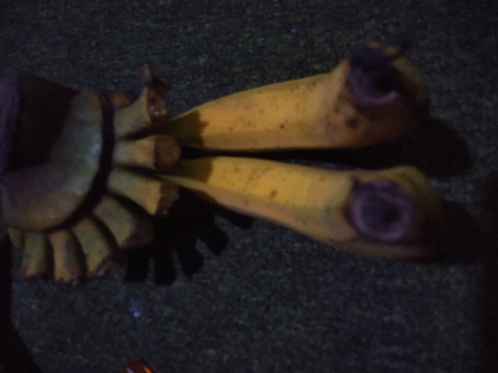 - "The image displays a large cluster of ripe bananas, predominantly yellow with areas of brown mottling and some residual green at the stem, set against a dark, textured background" by FM-9Cin83, licensed under CC BY 4.0