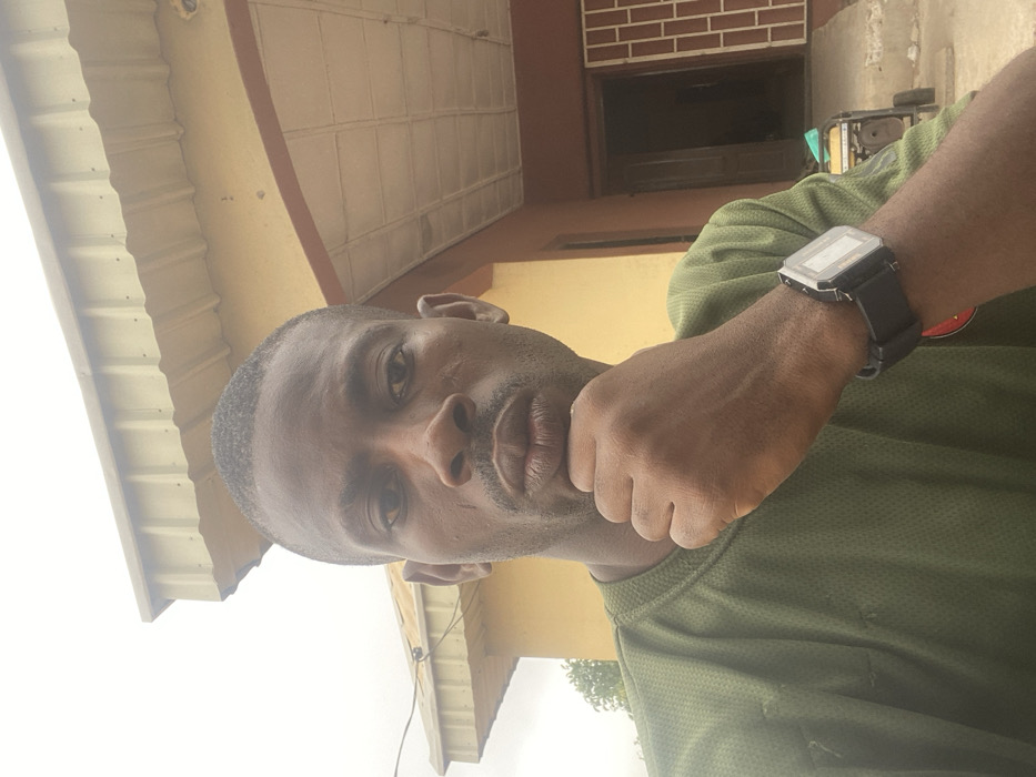 The image portrays a male individual, observed from the chest up, outdoors in Kado, Nigeria