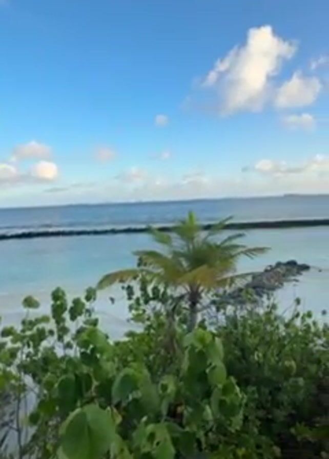The video showcases a tranquil beach scene in what appears to be a tropical location