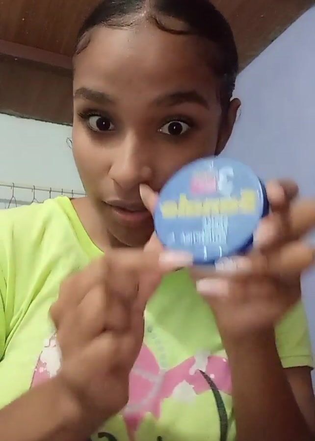 - "A young woman with brown skin and dark eyes is holding up a round, blue tin of Spalo anti-aging cream" by FM-e3IdV2, licensed under CC BY 4.0
