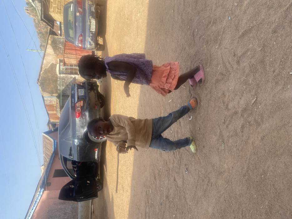 - "Two young children are playing in a dusty yard near parked cars and buildings" by FM-kmXt73, licensed under CC BY 4.0