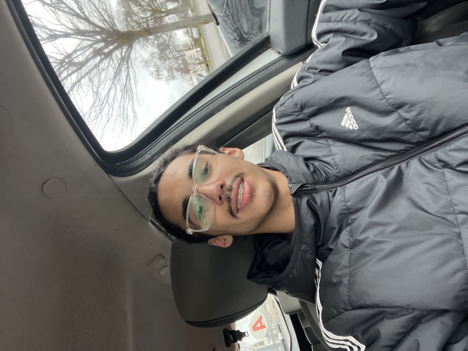 - "A young male individual, with dark hair styled in dreadlocks or braids, a mustache, clear-framed glasses, and dental braces, is depicted in a selfie taken from inside a vehicle" by FM-ebSzB3, licensed under CC BY 4.0