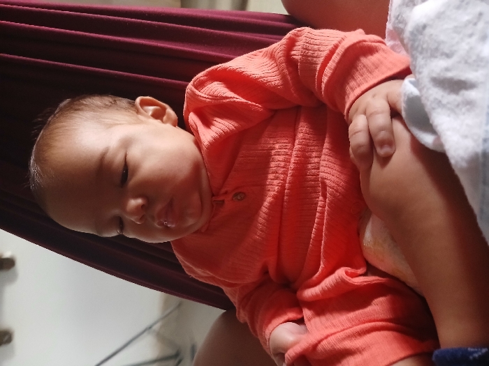 - "The image depicts an infant seated within a dark red fabric, consistent with a hammock, located in Juan Griego, Venezuela" by FM-XSA4R2, licensed under CC BY 4.0