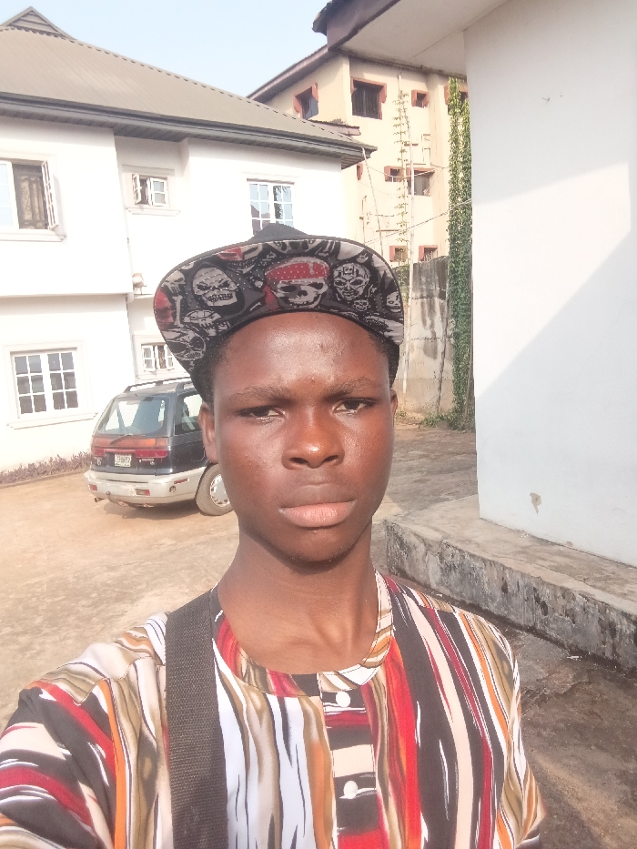An outdoor scene in Orie Uratta, Nigeria, features a young dark-skinned male positioned in the foreground, looking directly at the camera