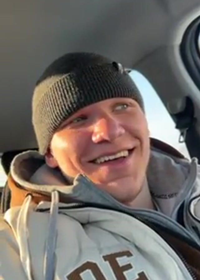 The video features a young man in a car, wearing a gray beanie and a light-colored jacket with brown accents