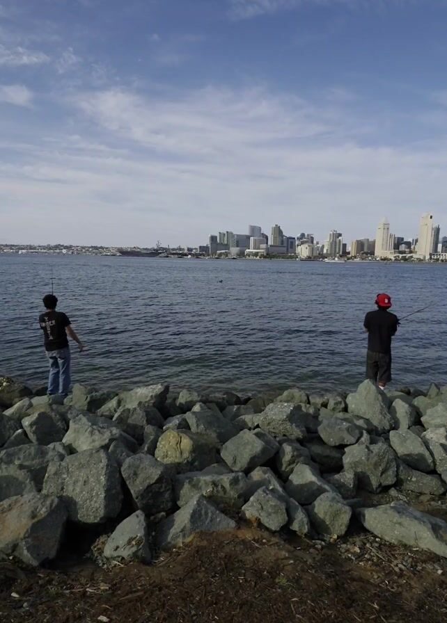 - "Two people are fishing from a rocky shoreline" by FM-mI4fq2, licensed under CC BY 4.0