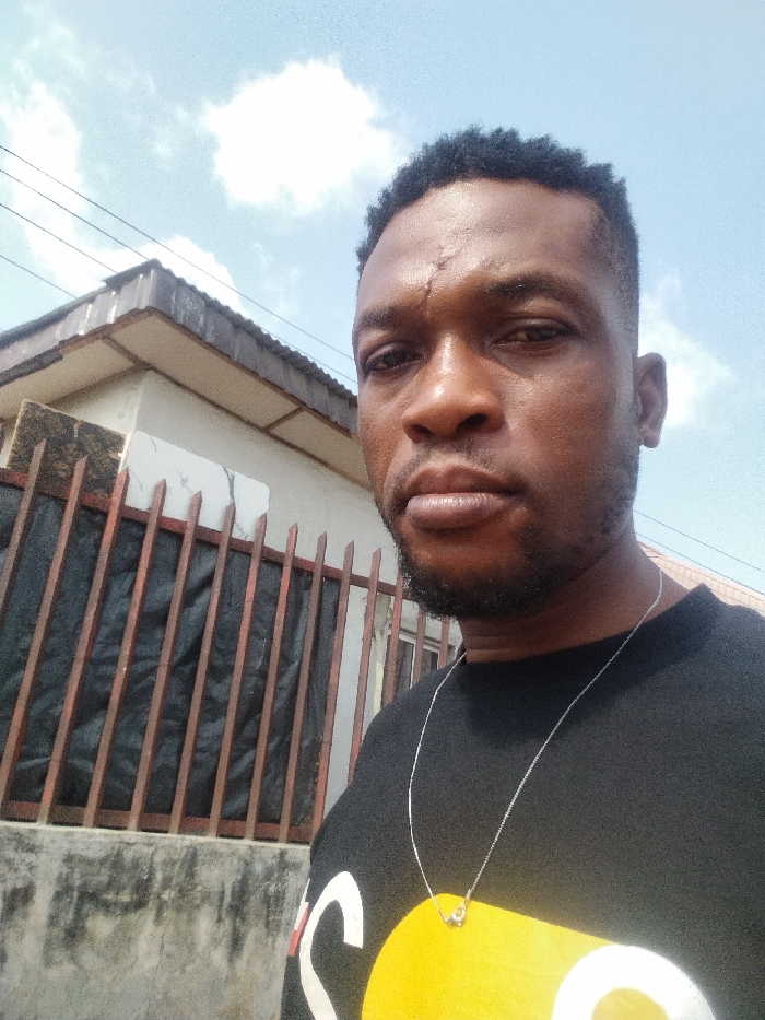 A medium close-up, angled portrait shows an adult male standing outdoors in Badore, Nigeria
