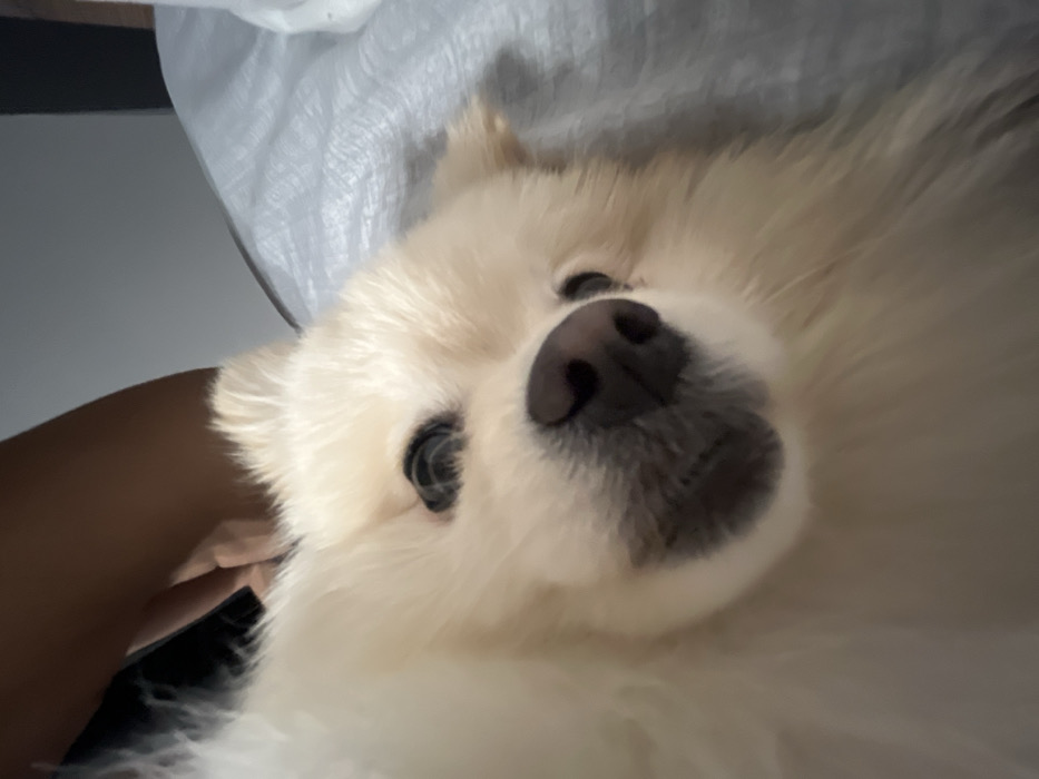 - "The image displays a close-up view of a small, cream-colored, fluffy dog, likely a Pomeranian, its head slightly tilted and occupying the majority of the frame" by FM-GdSvQ2, licensed under CC BY 4.0