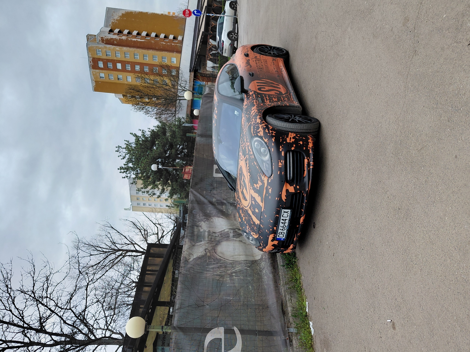- "The image depicts an orange and black-wrapped Porsche sports car parked on a paved street" by FM-w3MsE3, licensed under CC BY 4.0