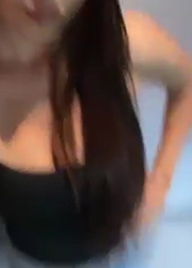 A young woman with long, straight brown hair and a nose ring is filming a selfie video indoors