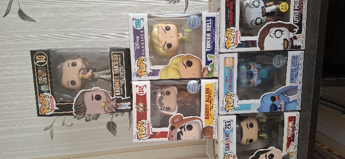 - "The image displays a vertical arrangement of seven boxed Funko Pop collectible figures, positioned on a dark, flat surface against a light-colored, patterned wall in Pazardzhik, Bulgaria" by FM-pGnKf1, licensed under CC BY 4.0