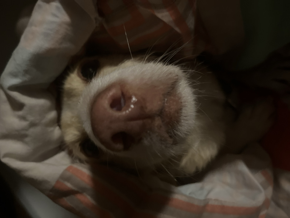 - "A close-up shot reveals a dog snuggled under a striped blanket, with its nose prominently in focus" by FM-rOKEu2, licensed under CC BY 4.0