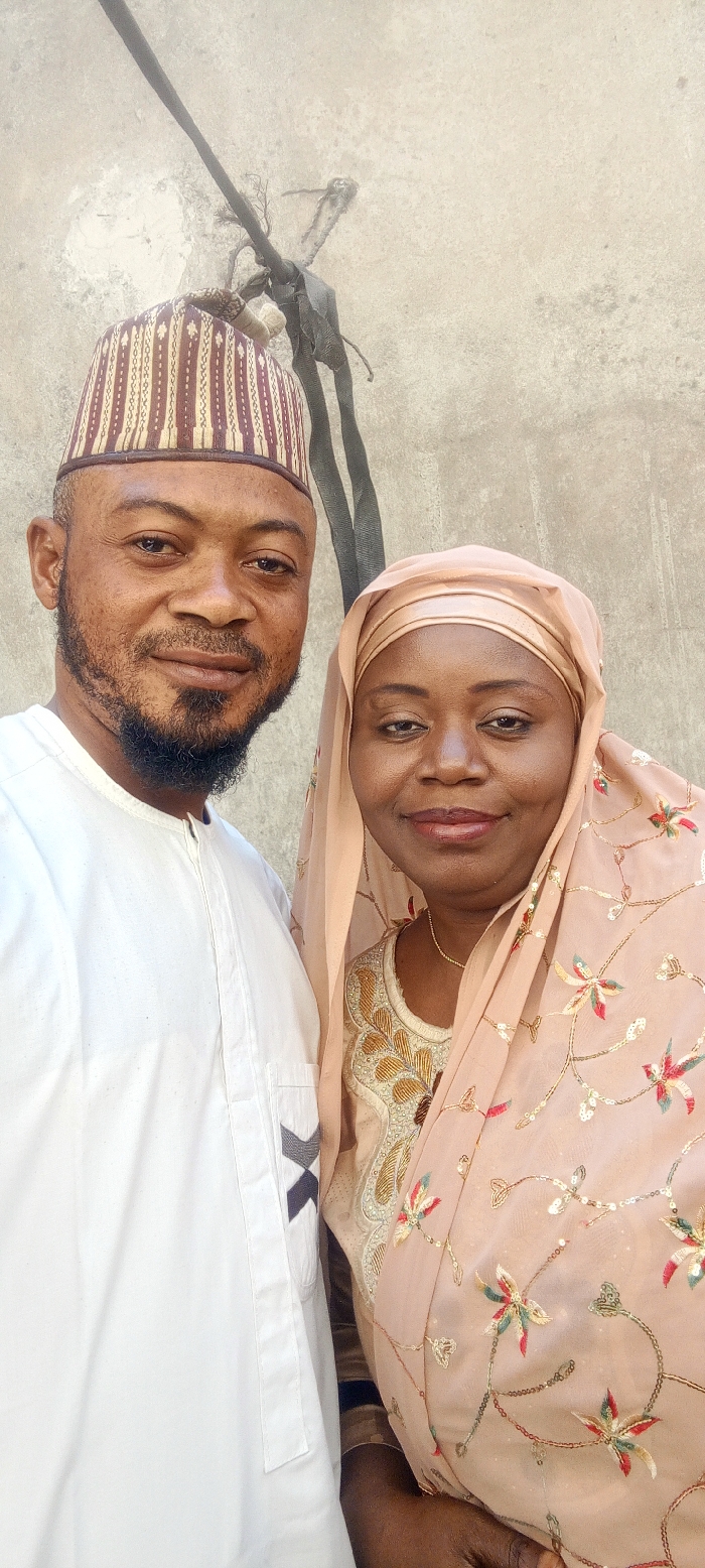 A portrait image captures two individuals, one male and one female, standing closely side-by-side in Dan Maliki, Nigeria