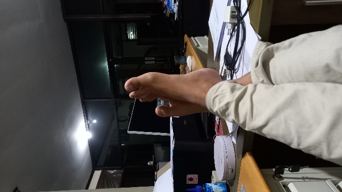 - "The image displays a first-person perspective of a subject's bare feet, crossed at the ankles, resting on a desk" by FM-FrMp53, licensed under CC BY 4.0