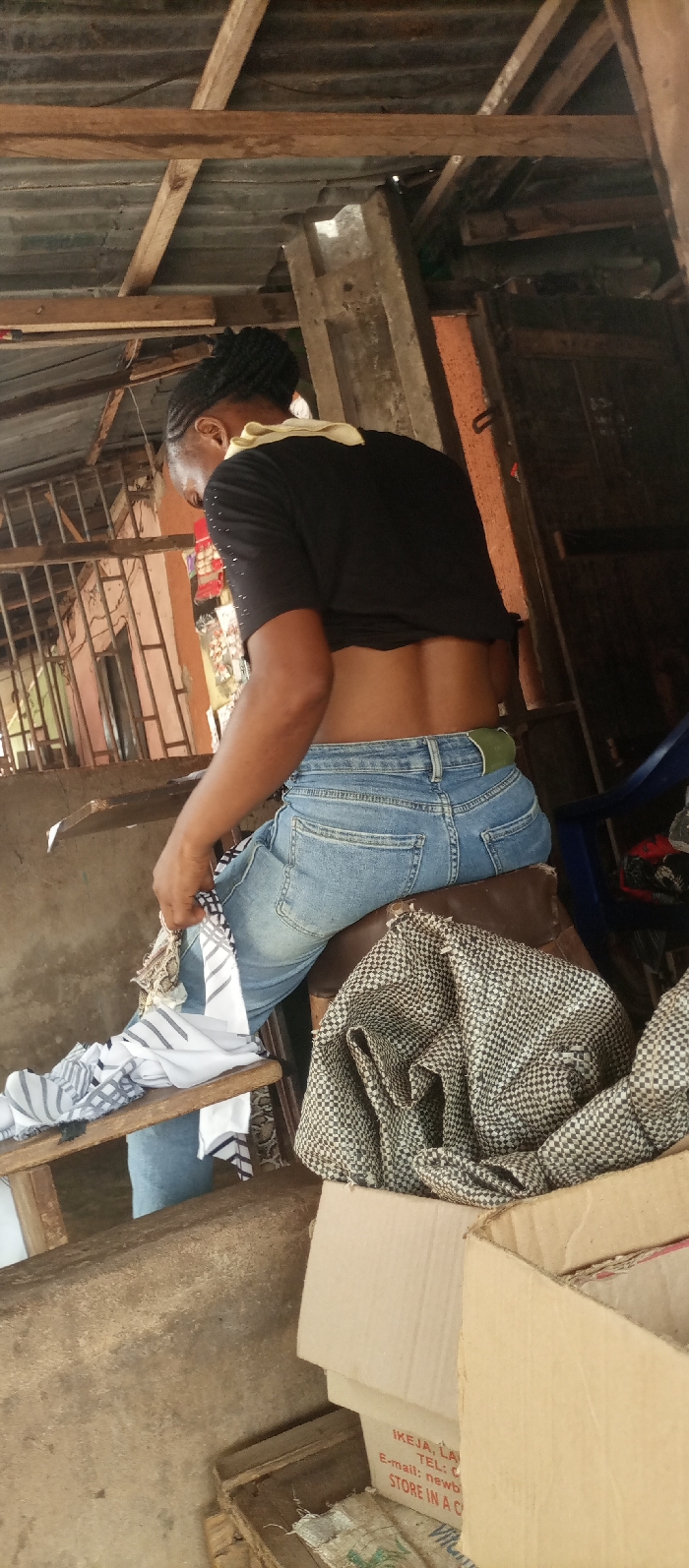 - "An individual, viewed from the rear, is seated within a market stall or shop in Umuoji, Nigeria" by FM-qZjH53, licensed under CC BY 4.0